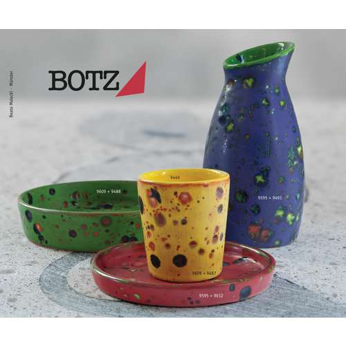 Für fast alle BOTZ Flüssigglasuren liegt die ideale Brenntemperatur bei 1050 °C. Mit einer Haltezeit von 10 - 20 Minuten brennen die Glasuren glatter aus und viele Effekte verstärken sich. Alle BOTZ-Glasuren und Engoben sind kennzeichnungsfrei, d. h. sie sind bleifrei und enthalten keine Gefahrstoffe in einer Konzentration, die nach der Gefahrstoffverordnung zu kennzeichnen wären.