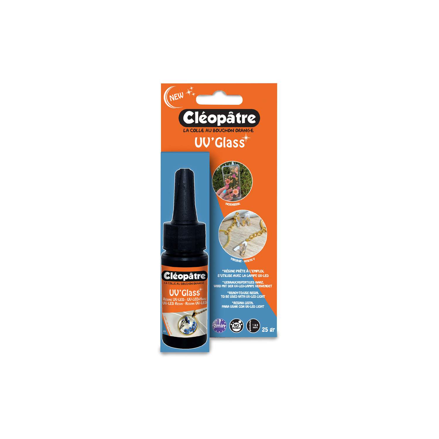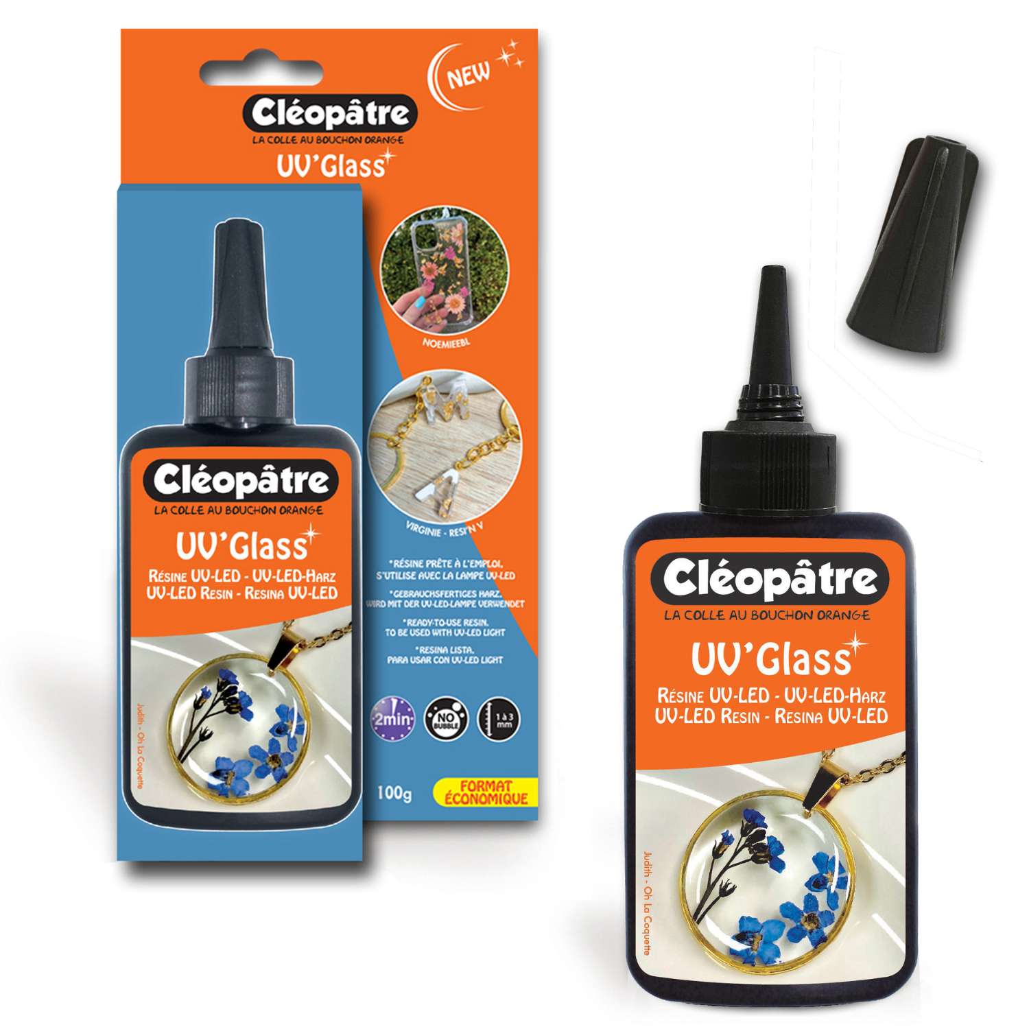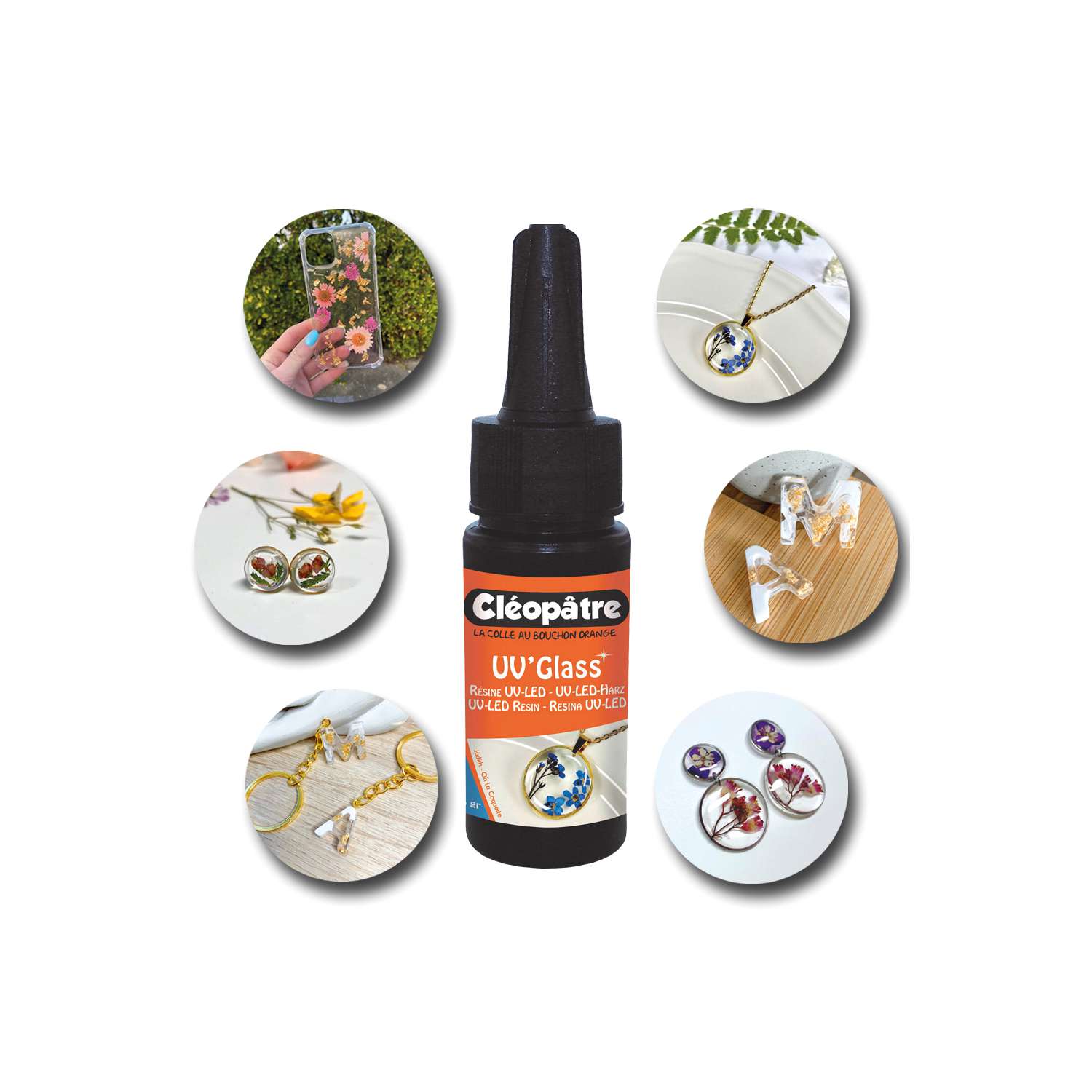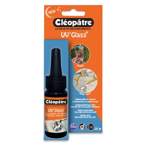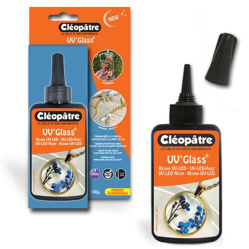 Das glänzende und transparente Resin UV'Glass ist ein gebrauchsfertiges flüssiges UV-LED-Harz zur Verwendung mit einer UV-LED-Lampe. Ideal für die DIY-Schmuckherstellung. Blasenfrei.
