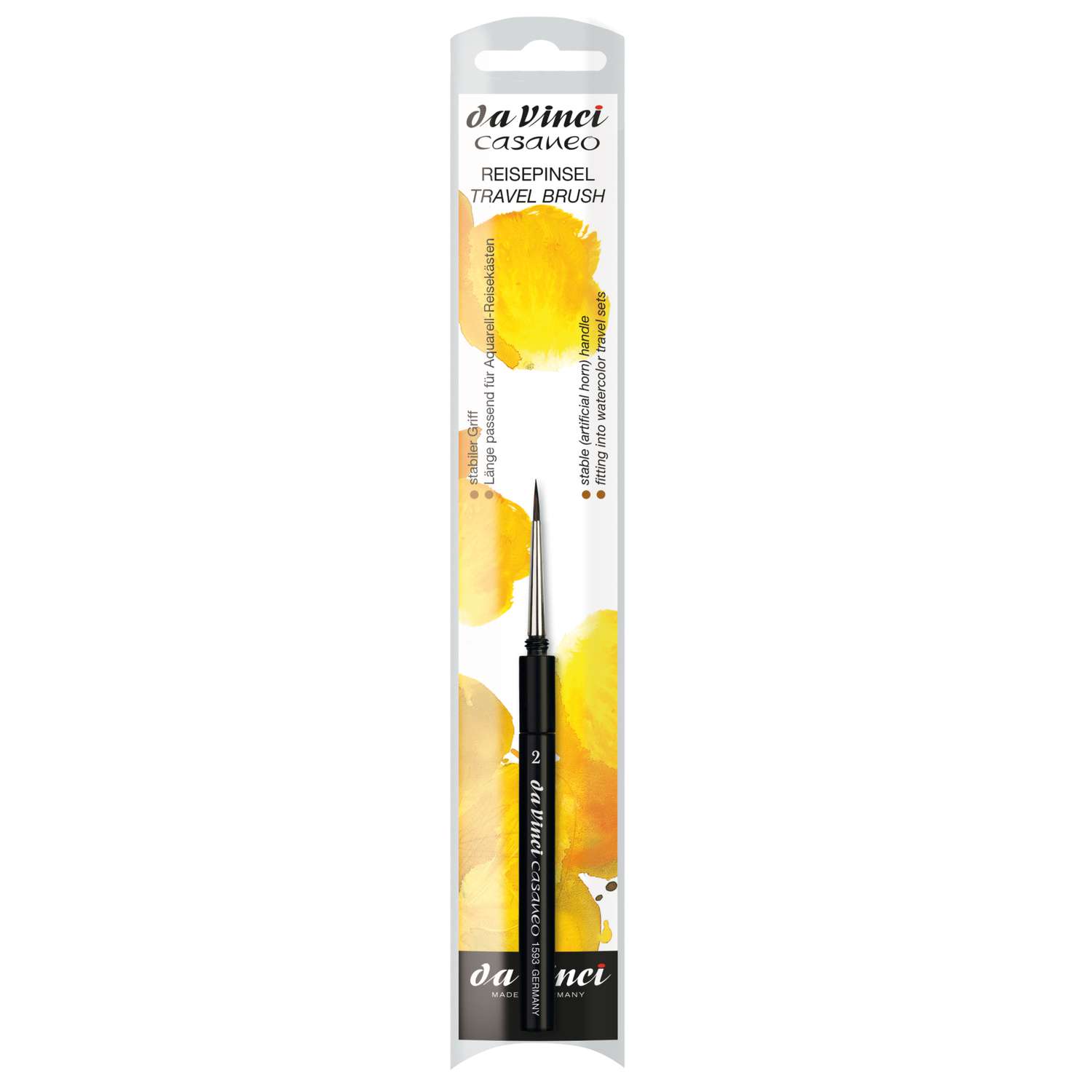 Diesem CASANEO Aquarellpinsel wird unterwegs kein Härchen gekrümmt, denn dank seiner Größe und den praktischen zweiteiligen Kunsthorngriff sind die feinen Pinselhaare optimal gegen das lästige Umbiegen geschützt. Der da Vinci CASANEO Aquarellpinsel 1593TP besitzt extraweiche Synthetikfasern mit außergewöhnlicher Elastizität und extrem hoher Farbaufnahmefähigkeit und ist daher ideal für präzise Details in Aquarell und Gouache. Der Pinsel ist für unterwegs bestens geeignet und ist ein unentbehrlicher Begleiter für Urban Sketcher.