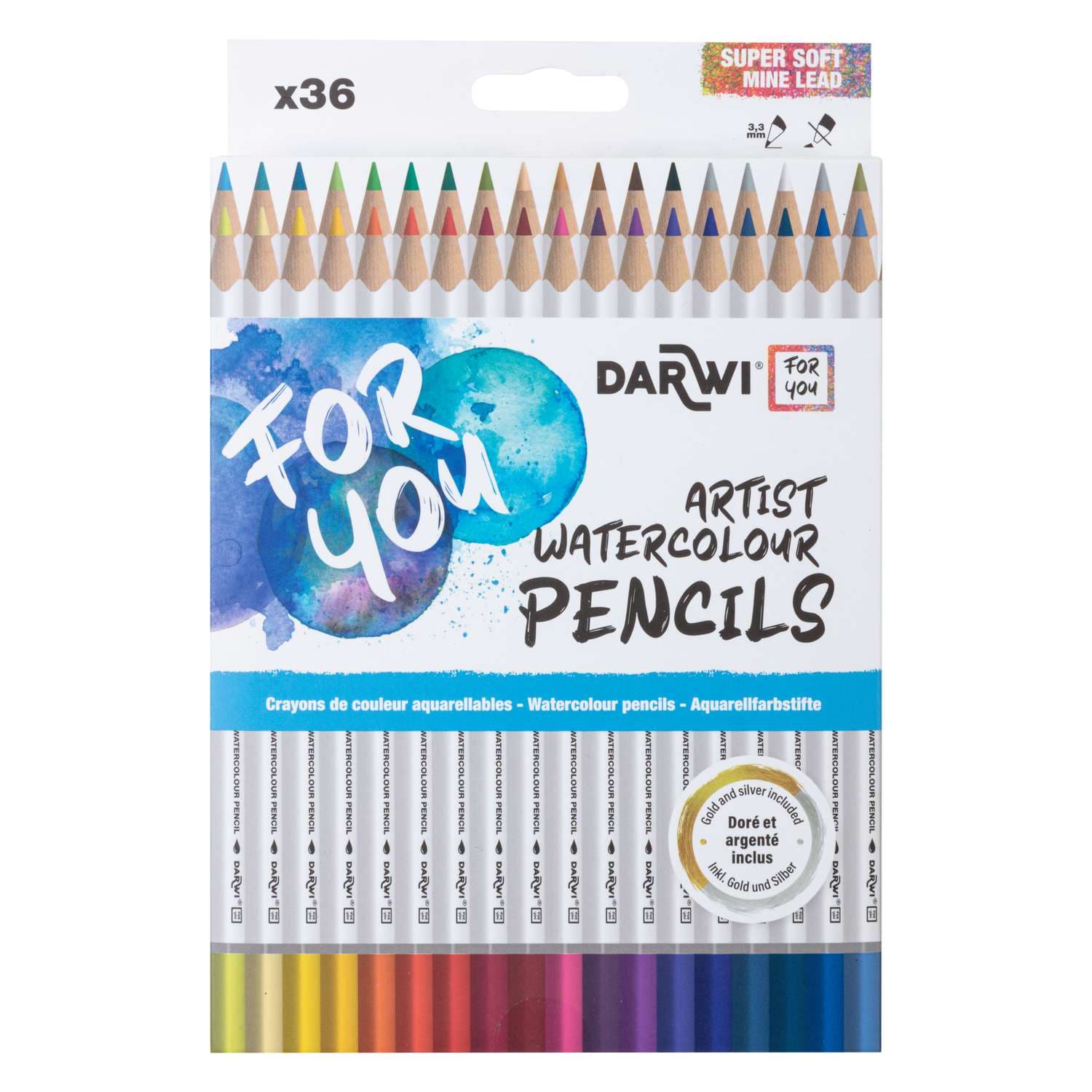 DARWI® FOR YOU Künstler-Aquarellfarbstifte sind samtweiche, hochpigmentierte Farbstifte, die sowohl trocken als auch mit Wasser verwendet werden können. Mit einem feuchten Pinsel entstehen beeindruckende Aquarelleffekte, während sie trocken klare, präzise Linien liefern.