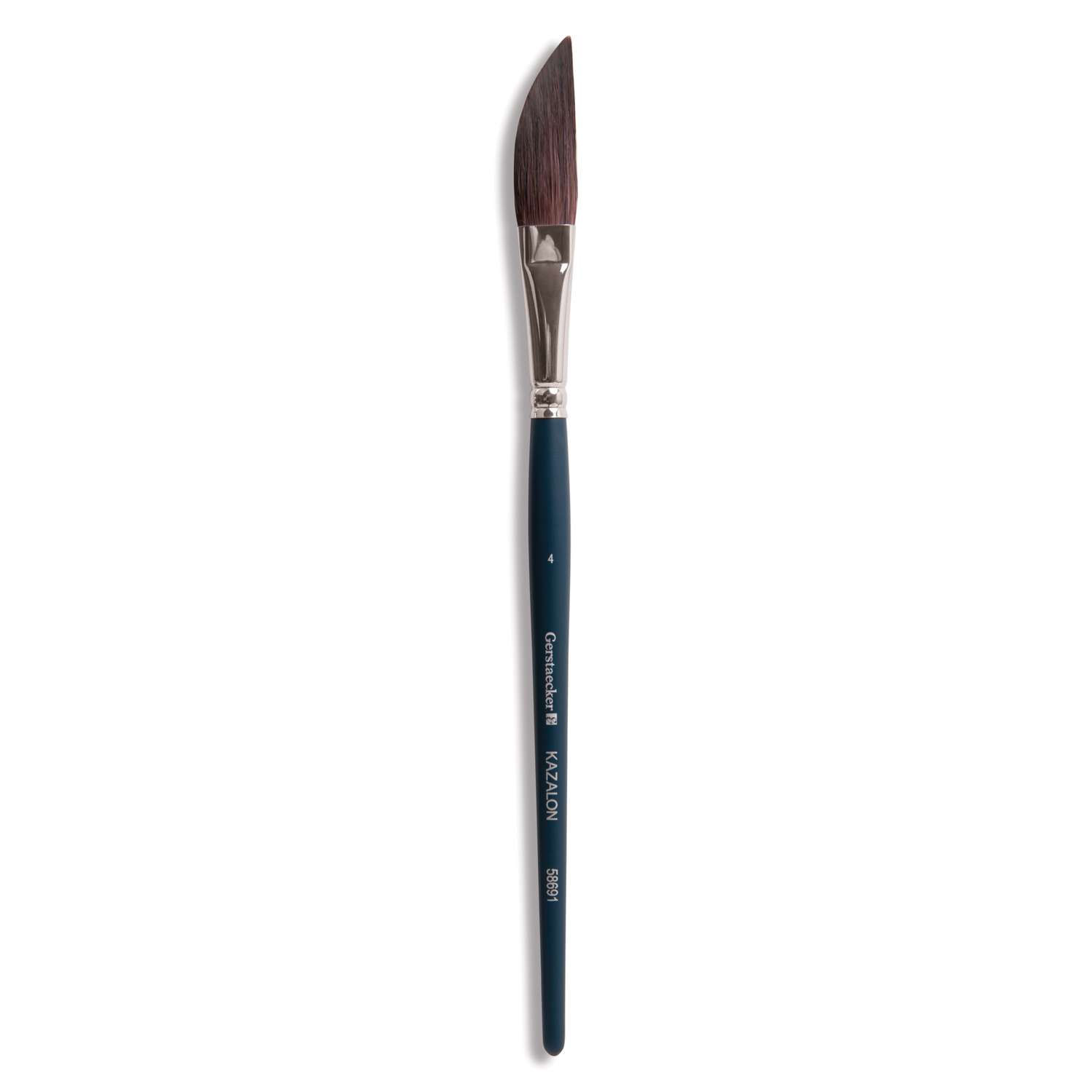 Neue Synthetikfasern mit ausgezeichneter Farbaufnahmefähigkeit: Der neue GERSTAECKER KAZALON Aquarellpinsel besitzt hochwertige Synthetikfasern, die dem beliebten Fehhaar nachempfunden sind. Die Fasern sind sehr elastisch und verleihen dem Schwertschlepper eine besonders feine Spitze. Damit ist der Pinsel auch ideal für Schriftenmalerei und fördert mit seiner schwertartigen Haarsetzung kreative Variationen der Malerei. Die hohe Geschmeidigkeit der Synthetikfasern ermöglicht einen sowohl deckenden als auch transparent seidigen Farbauftrag. Ein kurzer blaulackierter Holzstiel sowie eine Silberzwinge runden das Erscheinungsbild des hochwertigen Aquarellpinsels ab.