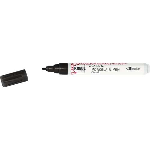 Der KREUL Glass & Porcelain Pen Classic medium ist ein deckender Dekorstift zum direkten Bemalen von Glas, Porzellan, Keramik und glasierten Oberflächen. Die wasserbasierte Farbe bietet eine glänzende Optik und lässt sich präzise auftragen. Mit der medium Spitze gelingen klare Linien, Schriftzüge und dekorative Details. Die Farbe haftet dauerhaft auf glatten Oberflächen und wird durch Einbrennen spülmaschinenfest. Der Classic Pen ist in verschiedenen farbintensiven Tönen erhältlich und eignet sich für individuelle Designs und kreative Projekte.