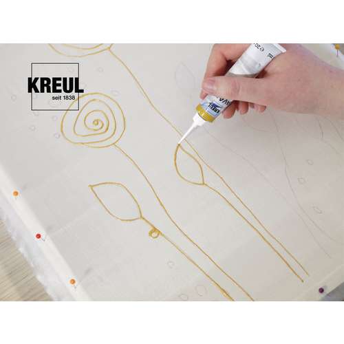 Das 14-teilige Einsteiger-Set beinhaltet 5 Gläser Javana Seidenmalfarben à 20 ml, 1 Tube Konturenfarbe Gold, 20 ml, 1 Tube Gutta farblos, 20 ml, 1 Glas Effektsalz, 20 ml , 2 Seidenzuschnitte 45 cm x 37 cm , 1 Pinsel, 2 Motivvorlagen (Geometric, Blütenzauber), Spannnadeln.