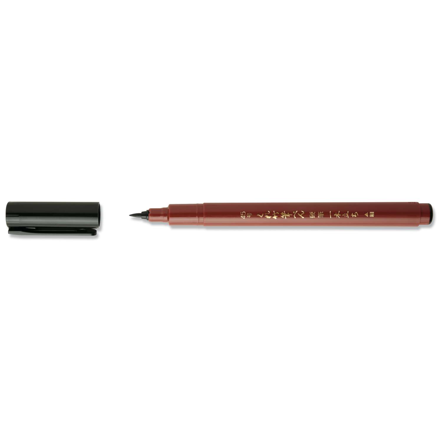 Der Kuretake "KOUHITSU IPPONACHI" N°45, Fude Pen ist ein Fasermaler mit harter Pinselspitze. Perfekt für feine, detallierte Zeichnen- und Schriftarbeiten. Schwarze Tinte auf Wasserbasis.