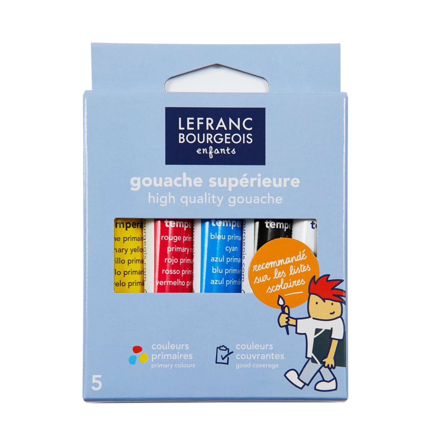 Das LEFRANC & BOURGEOIS Gouache-Set besteht aus 5 Gouachefarben in Tuben à 10 ml. Durch die hervorragende Mischbarkeit ist das gesamte Farbspektrum abgedeckt. Geeignet für die verschiedensten Malgründe, wie z.B. Papier, Holz Karton, Stoff oder Gips. Ideal für Kindergärten, Schulen und Hobbymaler.