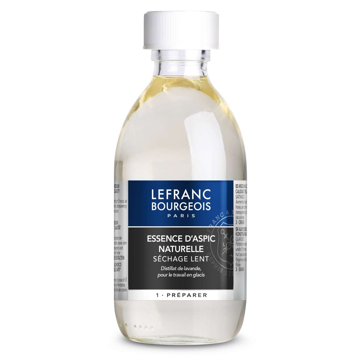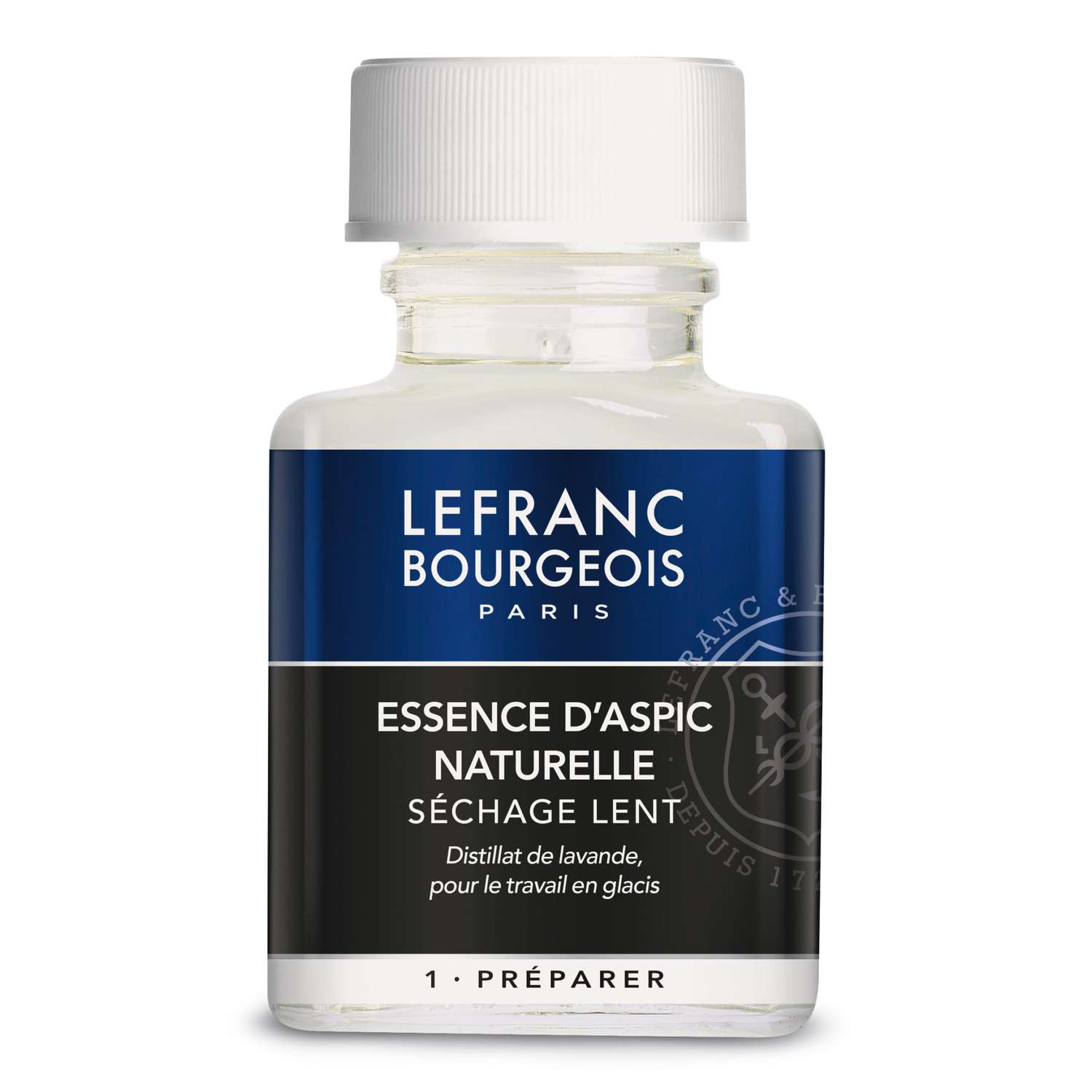 Traditionelles Öl aus dem Hause Lefranc & Bourgeois: Lavendelöl (Oil of Spike Lavender) wird aus der Destillation von Lavendel gewonnen. Traditionelles Ölmalmittel, das die Trocknung verzögert. Eignet sich hervorragend für Lasuren und Vorskizzen. Da es langsamer abbindet als Terpentin verdunstet, ist es in kleinen Mengen sehr ergiebig und eine gute Alternative zu herkömmlichen Lösungsmitteln.