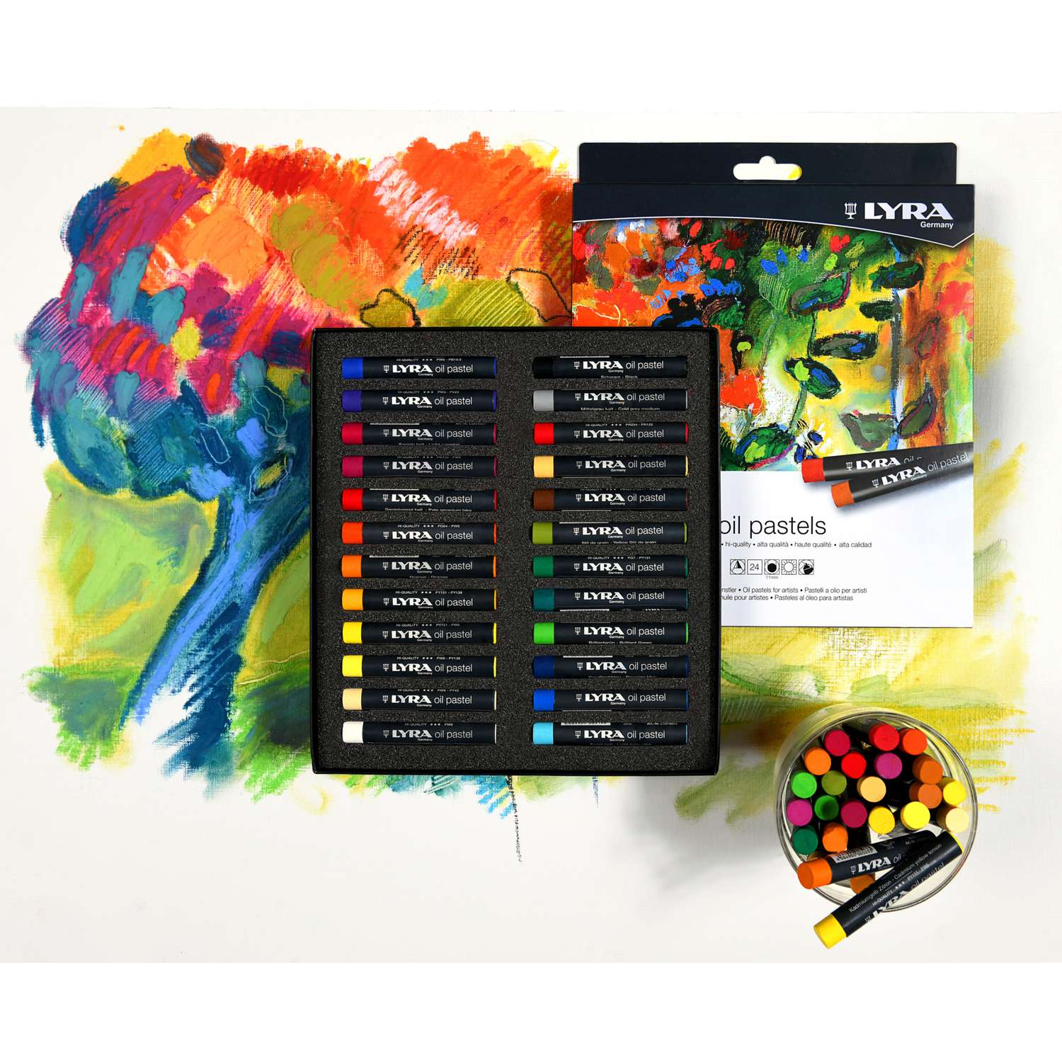 Die LYRA Ölpastellkreiden Sets bietet eine Auswahl weicher und farbintensiver Ölpastelle für kreative Anwendungen in der Schule, im Atelier oder im Hobbybereich. Die cremige Konsistenz ermöglicht ein leichtes Auftragen sowie das Mischen und Schichten der Farben. Die Ölpastelle sind langlebig, bruchfest und eignen sich für verschiedene Untergründe wie Papier, Karton oder Leinwand. Je nach Setgröße stehen harmonisch zusammengestellte Farbtöne für detailreiche Zeichnungen, flächige Farbaufträge oder Mischtechniken zur Verfügung. Die Sets eignen sich für Einsteiger und Fortgeschrittene, die kräftige Farben und vielseitige Techniken bevorzugen.
