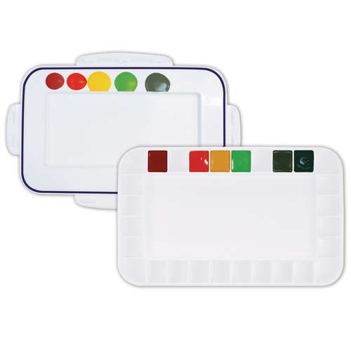 Diese neuen Kunststoffpaletten "Peel off" von MIJELLO sind einfach wunderbar! Hier ist kein lästiges Säubern und Schrubben der eingetrockneten Farben mehr notwendig - einfach die getrockneten Acryl- oder Öl-Farbe von der Palette "abziehen" und sauber kann es in den nächsten kreativen Farbenmix gehen. Ermöglicht wird dies durch eine Spezialbeschichtung. Die Kunststoffpaletten sind in verschiedenen Ausführungen erhältlich und verfügen über längliche Vertiefungsfelder, in denen die Farben wunderbar miteinander vermischt werden können, ohne das diese über den Palettenrand überlaufen können. Überzeugen Sie sich selbst von diesen pflegeleichten Kunststoffpaletten.