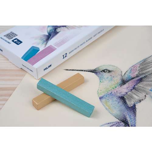 Die MILAN® Soft Pastels in Carréform vereinen intensive Metallic-Farben mit exzellenter Leuchtkraft. Sie eignen sich ideal zum Malen, Mischen, Verblenden und flächigen Arbeiten. Die quadratische Form (65 mm x 10 mm x 10 mm) ermöglicht sowohl feine Linien als auch breite Farbaufträge.