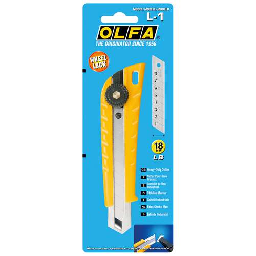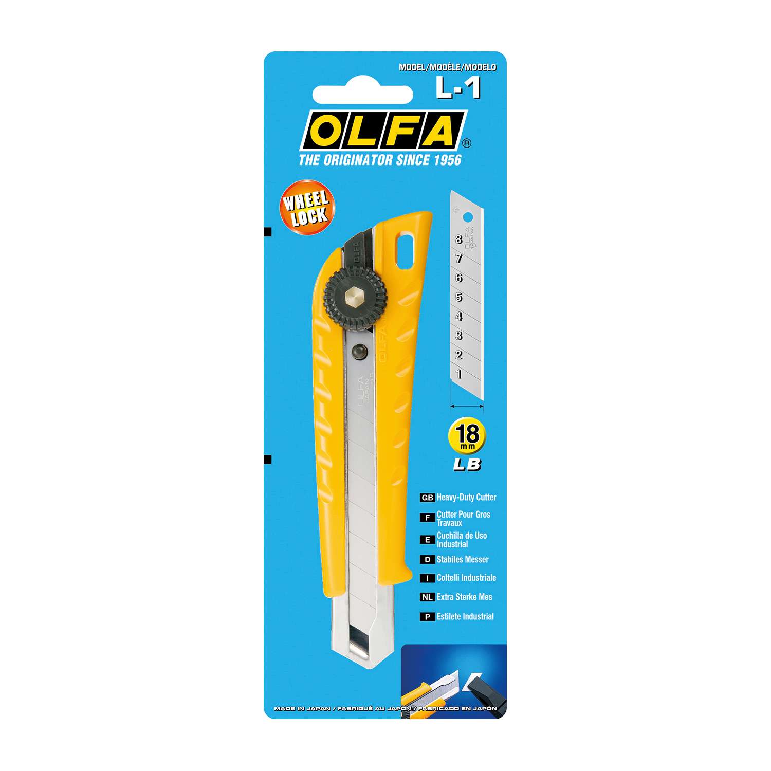 OLFA® L-1 Universal-Cutter mit 18-mm-Abbrechklinge. Absoluter Bestseller! Stabiler Profi-Cutter für alle Einsätze, mit stufenloser Klingenfeststellung durch Rändelschraube.