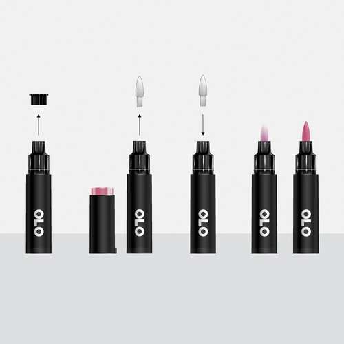 Ersatzkartusche mit 2 ml alkoholbasierter OLO™ Tinte zum Wiederbefüllen von Halbmarkern. Kompatibel mit allen OLO™ Spitzen für flexibles und nachhaltiges Arbeiten.