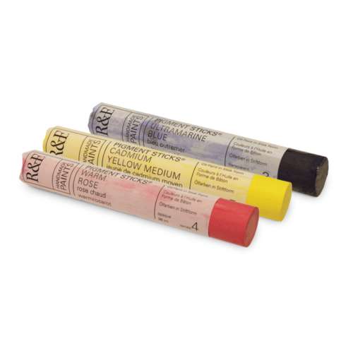 Die R&F Pigment Sticks® können mir Terpentin, Spiritus verdünnt werden oder mit Standöl, Leinöl, Alkydmedien oder Harzgele vermischt werden. Die Sticks sind für folgende Untergründe geeignet: Leinwand, Papier, tonbeschichtetes Papier, Lauan-, Sperrholz- oder Masonitplatten (Holzfaser), Kupfer, Eisen oder Aluminium, Glas und Plexiglas.