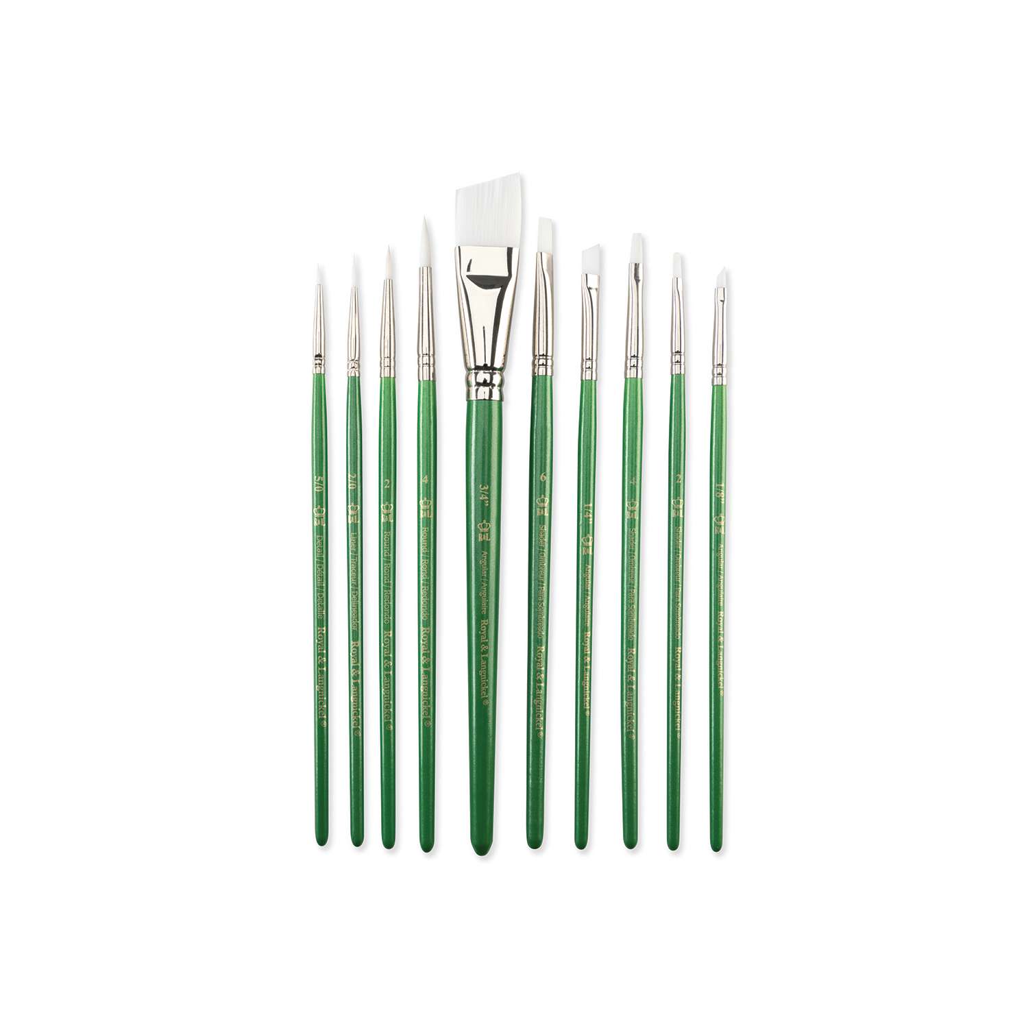 - 10 verschiedene Pinsel für vielseitige Anwendungen: Rund 2, 4; Schräg 1/8", 1/4", 3/4"; Schattierer 2, 4, 6; Linierer 2/0; Detail 5/0
