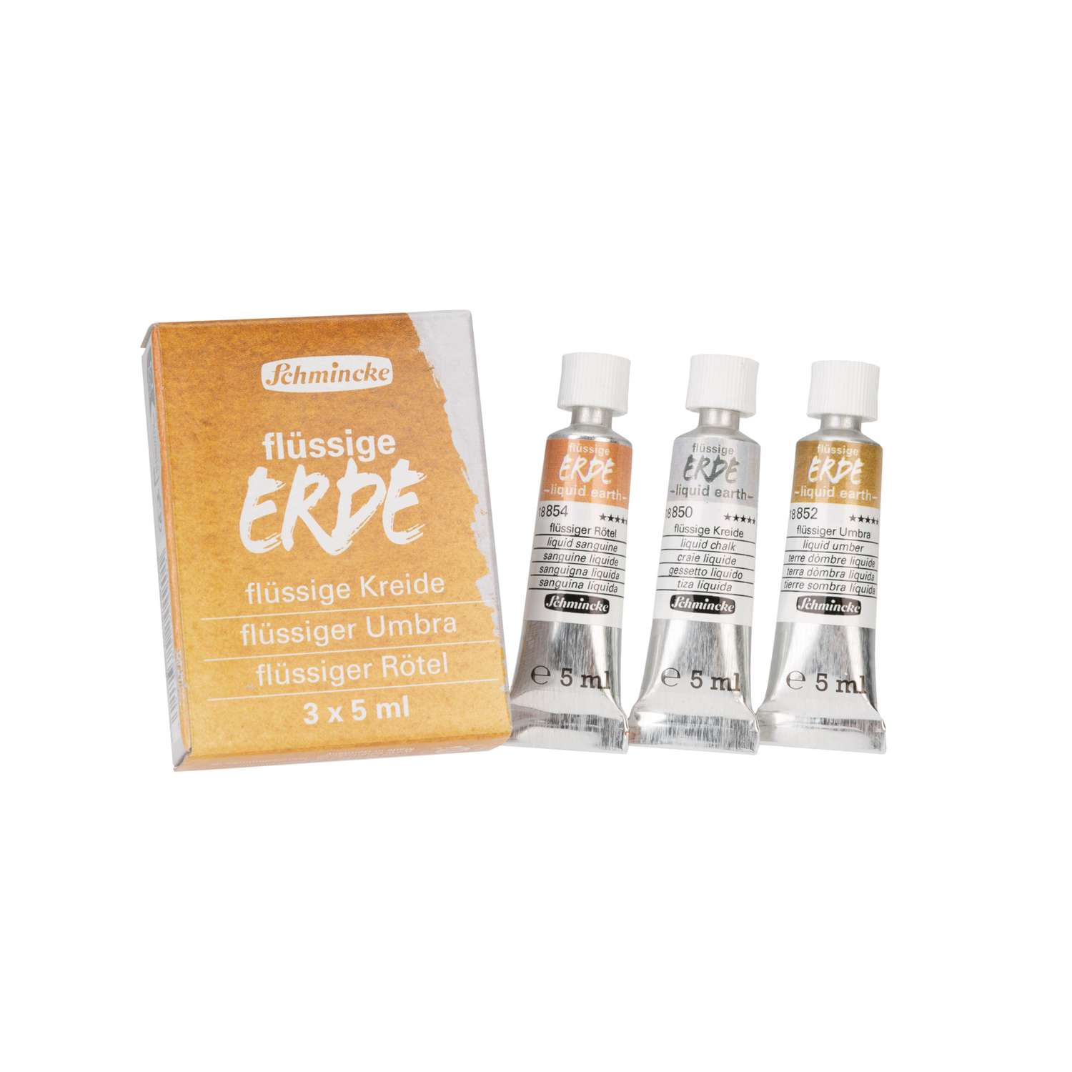 Das SCHMINCKE flüssige Erde 3er-Set enthält folgende Farbtöne