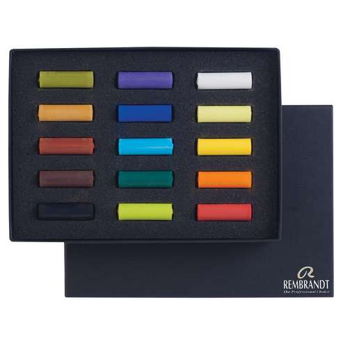 Starter-Set mit 15 halben weichen Pastellen in Kartonverpackung. Ausgezeichnete Farbabgabe. Hohe Farbkraft, brilliante und reine Farbtöne, hohe Lichtechtheit. Frei von Pigmenten auf Metallbasis (Kadmium, Blei oder Kobalt).