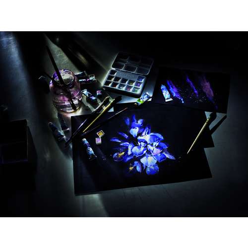Praktisch und funktionell: Die Van Gogh Pocket Box ist in dieser Edition mit 12 halben Näpfchen Van Gogh Aquarellfarbe in leuchtenden Metallic- und Interferenz-Farbtönen bestückt. Besonders auf schwarzem Aquarellpapier überzeugen sie durch leuchtende Kontraste.