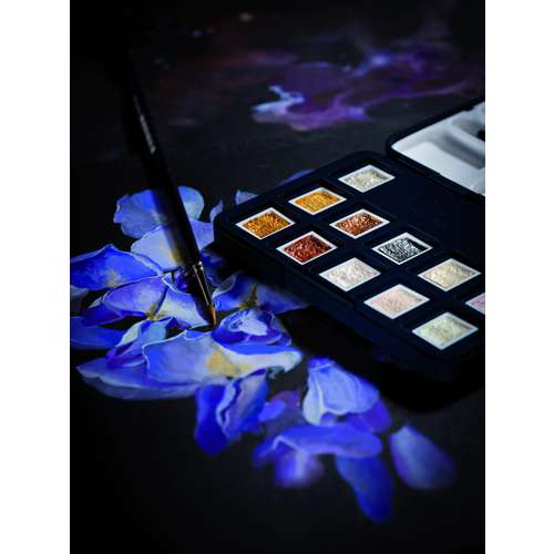- 12 halbe Näpfchen Van Gogh Aquarellfarbe in Metallic- und Interferenztönen