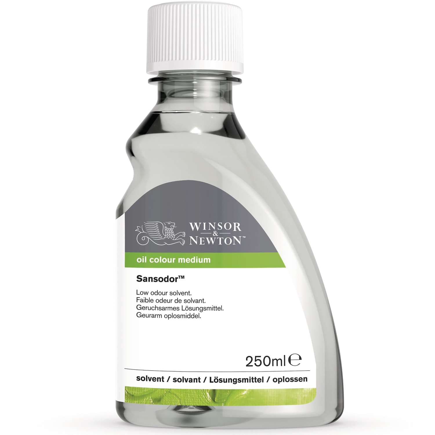 WINSOR & NEWTON™ Sansodor ist ein geruchsarmes Lösungsmittel. WINSOR & NEWTON™ Sansodor ist hervorragend für Künstler geeignet, die nicht mit Terpentin arbeiten möchten. Das Lösungsmittel WINSOR & NEWTON™ Sansodor verdunstet langsam, ergibt mit Ölfarben ein viskoses Gemisch und ist das am wenigsten gefährliche Künstler-Lösungsmittel. WINSOR & NEWTON™ Sansodor eignet sich für Ölfarben sowie für Alkydfarben. Auch als Verdünnungsmittel und zum Reinigen von Pinseln lässt sich WINSOR & NEWTON™ Sansodor sehr gut einsetzen. Sie erhalten das Lösungsmittel in der leichten und stabilen 75-ml-, 250-ml- und 500-ml-PET-Flasche, sowie im rostfreien, lichtgeschützten und stabilen 1-Liter-Metallkanister.
