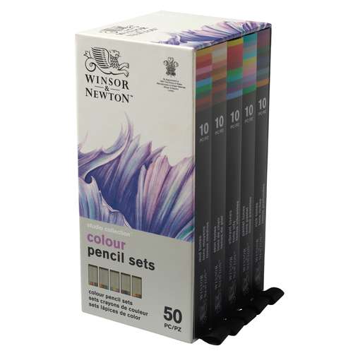 Das WINSOR & NEWTON™ Studio Collection Farbstift-Set begeistert durch seine außergewöhnliche Verpackung: Die edle Box erinnert an eine hochwertige Buchsammlung. Im Inneren verbergen sich 50 Farbstifte, geordnet in fünf Schubladen, die jeweils eine eigene Farbpalette präsentieren.